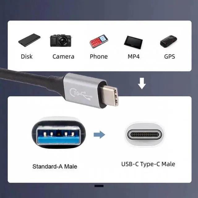 • 10Gbps USB 3.1 Type C Male to USB3.0 Type A Male Data Power Cable 5V3A for Laptop Phone Disk