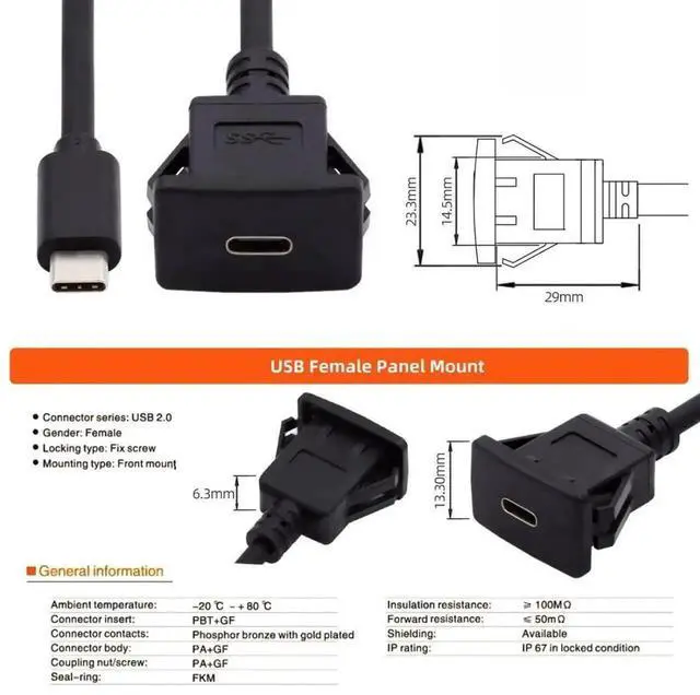 USB C Waterproof Cable, USB 3.1 Type C Male to Female Extension Data Power Waterproof Dustproof Cable for Car Panel Mount Design