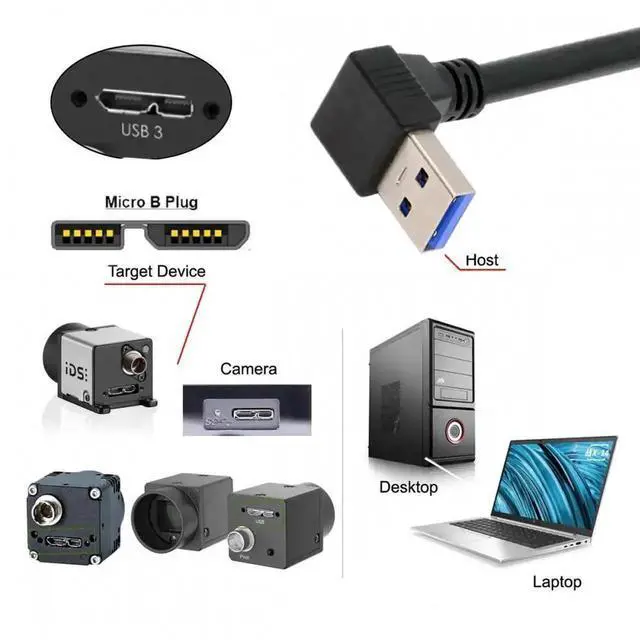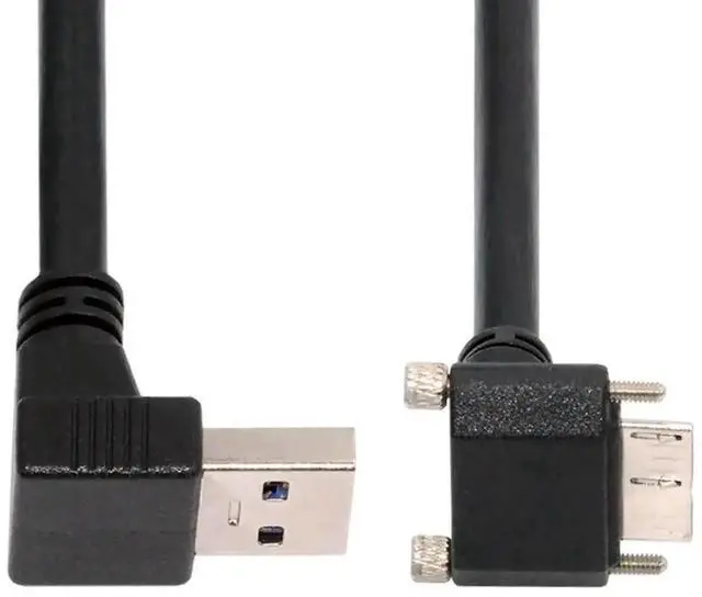 Down Angled 90 Degree USB 3.0 A Male to Micro-B 3.0 Plug Angled Locking Screw Panel Cable 25cm