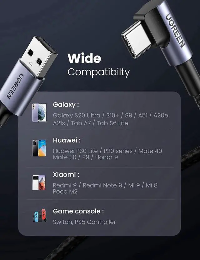 Right Angle USB C: With a 90 degree L design, UGREEN USB C cable is more convenient and comfortable for playing games, watching videos when lying on the couch or bed while charging. (Note : The maximum allowable thickness of the case is 2mm/0.08 inch)