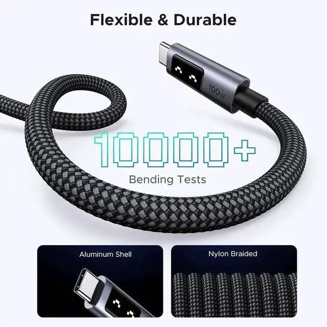 100W USB C Fast Charging: This USB C cord supports PD100W. When work with a compatible USB C power adapter, it elevates your charging speed to a whole new level