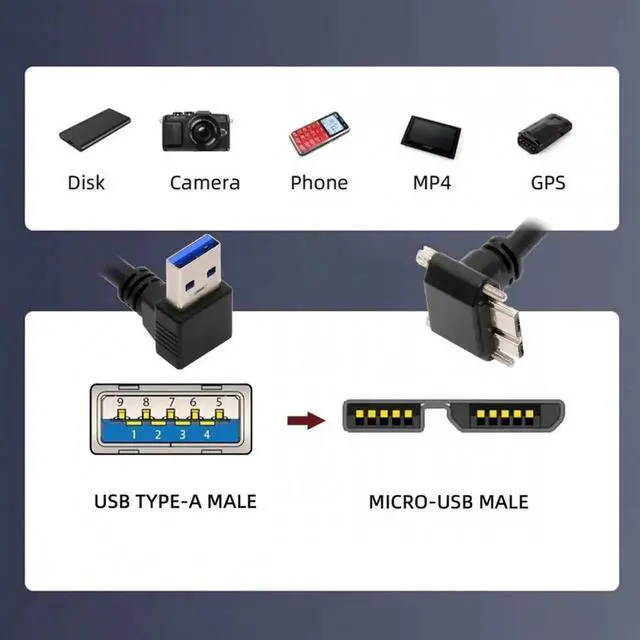 This Angled type Cable Allowing you to connect the cable to a female port, even if space around the port is limited.