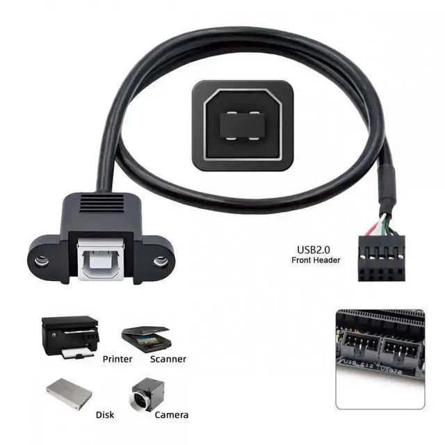You can convert the 9pin motherboard internal usb 2.0 port to type-B device. Used to connect USB type-Bcables in tight fit applications.