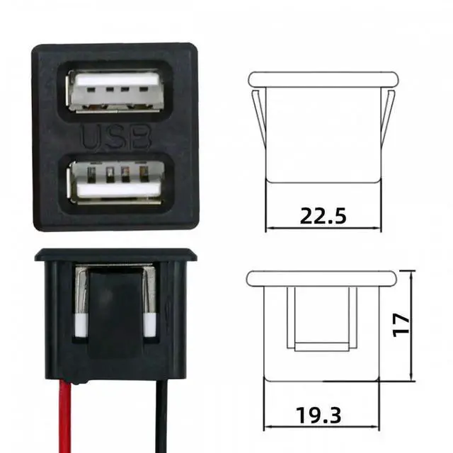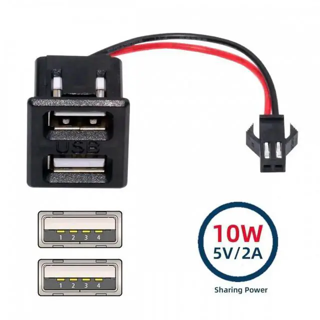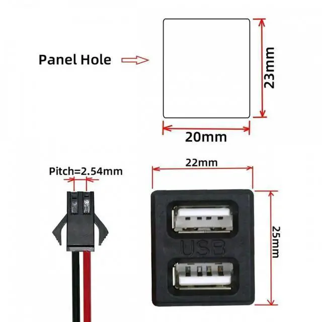 DIY OEM Dual Type-A Female Socket to 2Pin Header Cable Pitch=2.54mm Latch Mount Type DC 5V Power