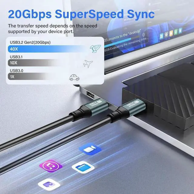 1. This USB-C cable can reach data transfer rates of up to 20Gbps and supports charging up to 100W 20V/5A, powering you at the same time while using USB-C devices.