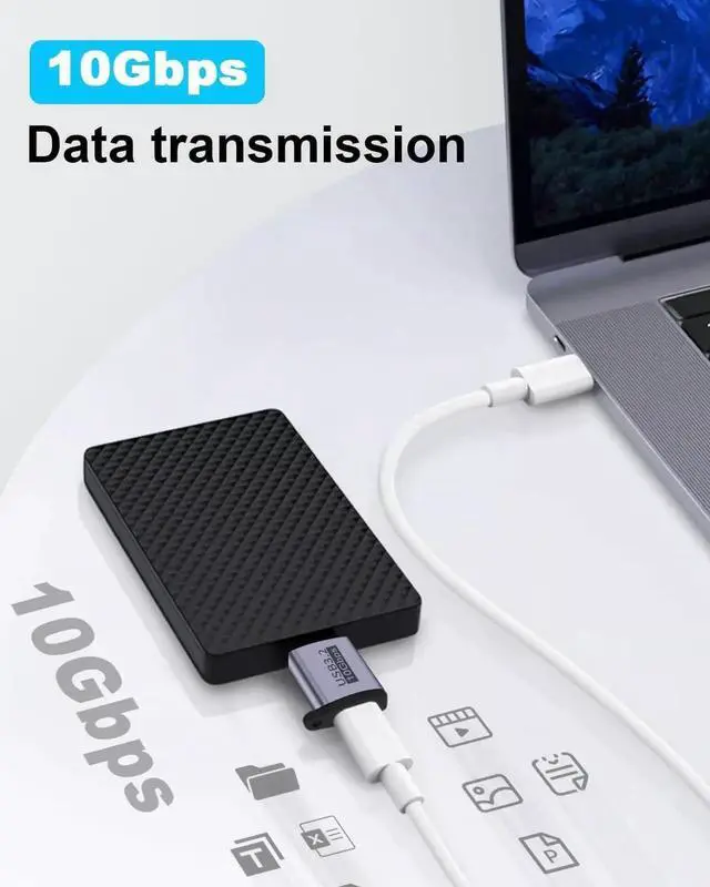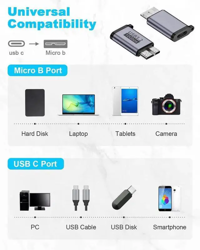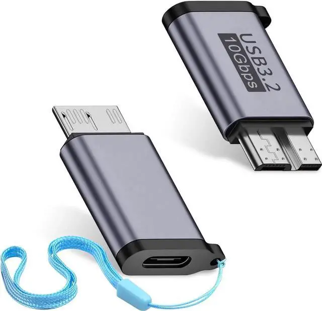 USB C to Micro B Adapter: It is plug-and-play, with a mini-size design that is easy to carry and provides a secure and stable connection between portable external hard drive drivers and laptops. It comes in a package of 2 Micro B to USB C adapters, with a male-to-female connection and a keychain strap included.