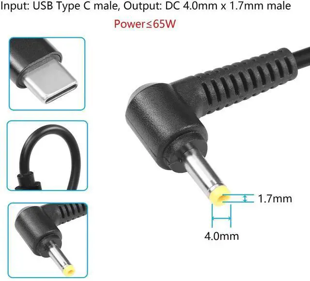 Package: 1 X Type C to DC 4.0 x 1.7mm Power Charging Cable.