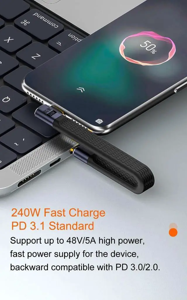 • Supports 240W PD fast charging and 8K@60Hz HD video/audio output, ideal for monitors, laptops, docks and high-power devices.