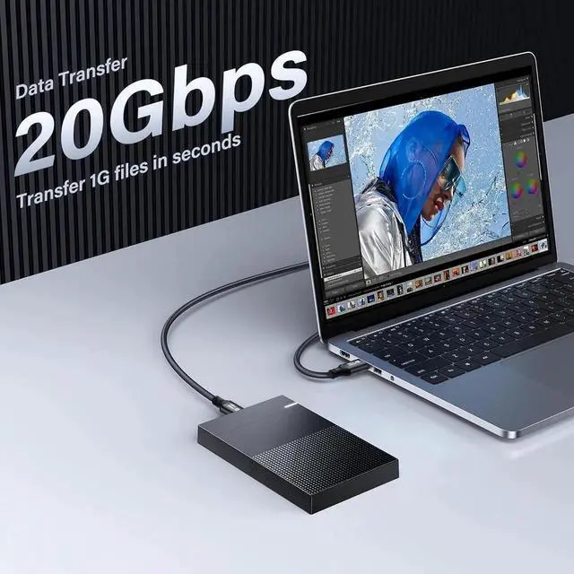 1. This USB-C cable can reach data transfer rates up to 20Gbps and supports up to 100W 20V/5A charging, powering you at the same time while using USB-C devices.