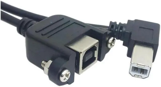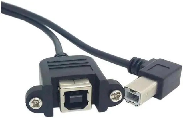 90 Degree Right Angled USB B Male to Female extension cable with screws for Panel Mount 70cm