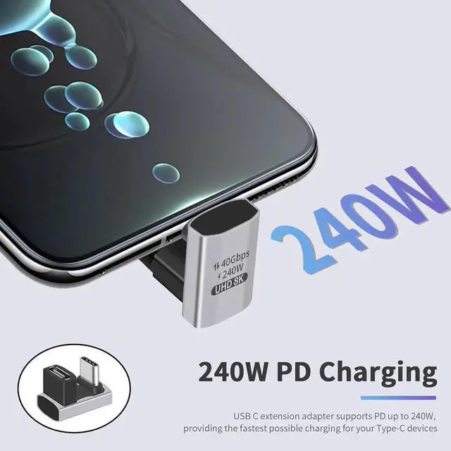 240W 180 degree USB C adapter: It is an upgraded version of the USB C adapter. This usb c 180 degree adapter can deliver up to 240W (48V 5A), which fully satisfies your fast charging needs for Thunderbolt, MacBook, or other USB-C devices. It is an upgrade from the 60W and 100W versions and is backward compatible.