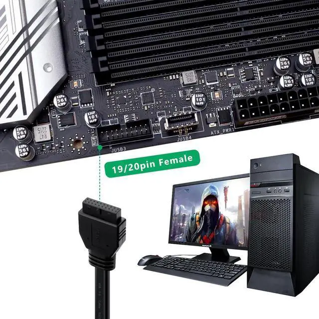 2 port USB 3.0 female front panel to 19/20pin header cable.
