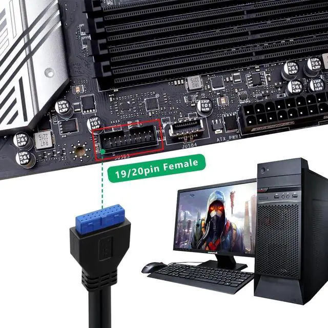 For motherboards with limited USB ports, the USB 3.0 front panel splitter cable is an ideal choice. It can convert a 19/20-pin motherboard line female header into two USB 3.0 Type-A ports, providing you with more choices for connecting external devices