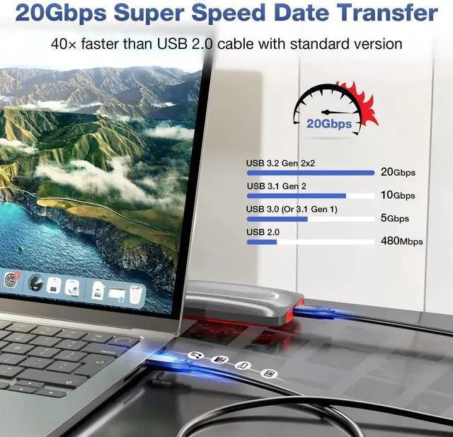 Type C Male to Fmale Cable Extension, 240W Charging, 20Gbps Data Transfer, 4K USB C 3.2 Gen2×2 Monitor Cable for MacBook Pro, Dell, Arzopa, Galaxy, USB C for Portable Monitor