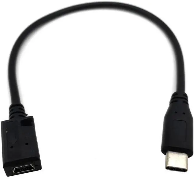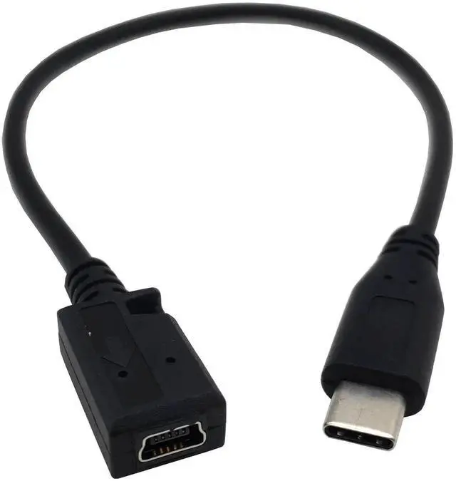 1ft/25cm 90 degree Right Angled USB 3.1 Type C Male to Mini 5-Pin Type B USB Male Charging Cable. Plug and play, reversible Type-C connector can be plugged and unplugged easily without checking its orientation.