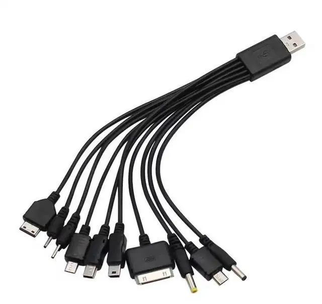 This USB charger cable features 10 different connectors compatible with most smartphones, tablets, and other USB devices.