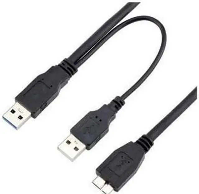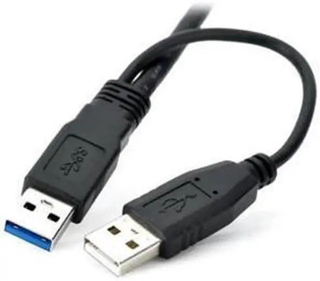 USB 3.0 y-cable provides a transfer rate of up to 4.8 Gbps when connected with a USB 3.0 compliant host and device. Twisted pair cabling and shielded construction ensure our USB 3.0 cable meets or exceeds current USB 3.0 SuperSpeed standards. Molded strain relief protects ensures years of trouble-free data transmissions. An additional USB type-A connector allows the cable to be connected to two USB ports ( 2.0 or 3.0 ) for maximum power and performance.