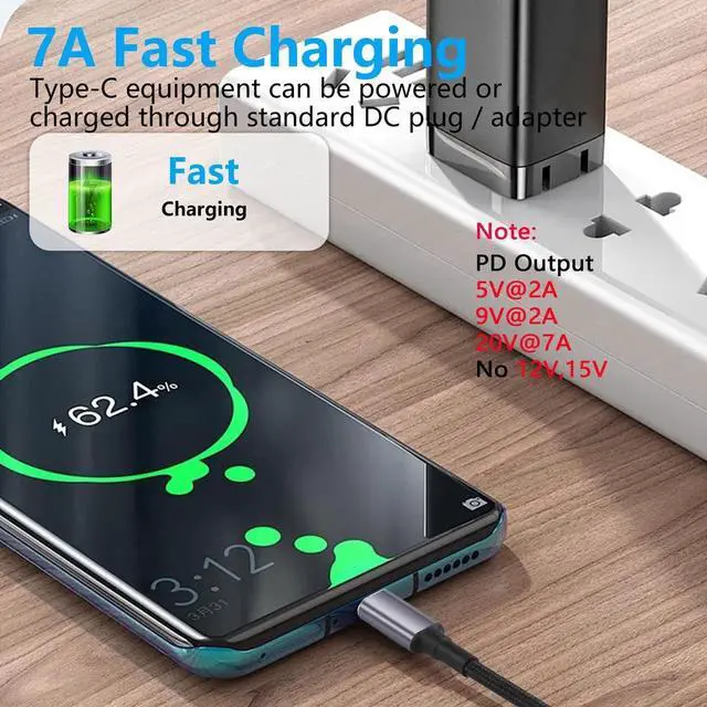 1 X DC DC 4.5mm x 3.0mm female (4.5 x 0.6mm) input to USB Type C male cable.