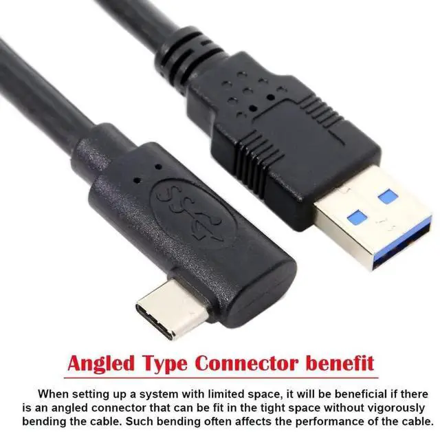 Upgrade your camera tethering and VR gaming experience with the Aomoproing 5meter angled USB C to USB 3.0 cable. Engineered with a 90degree left/right reversible TypeC connector, it keeps cables tucked neatly along your VR headset or camera body, avoiding snags and reducing port wear from constant bending.