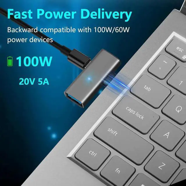 PD 100W Fast Charging The USB C adapter has a PD 100W USB C charging interface, which can achieve maximum power transmission of 20V/5A, 100W and quickly charge your device while transmitting data.