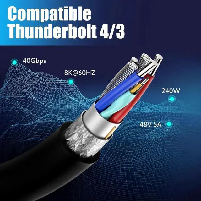 1ft short length, flexible and durable, ideal for Thunderbolt 3/4 and USB-C devices