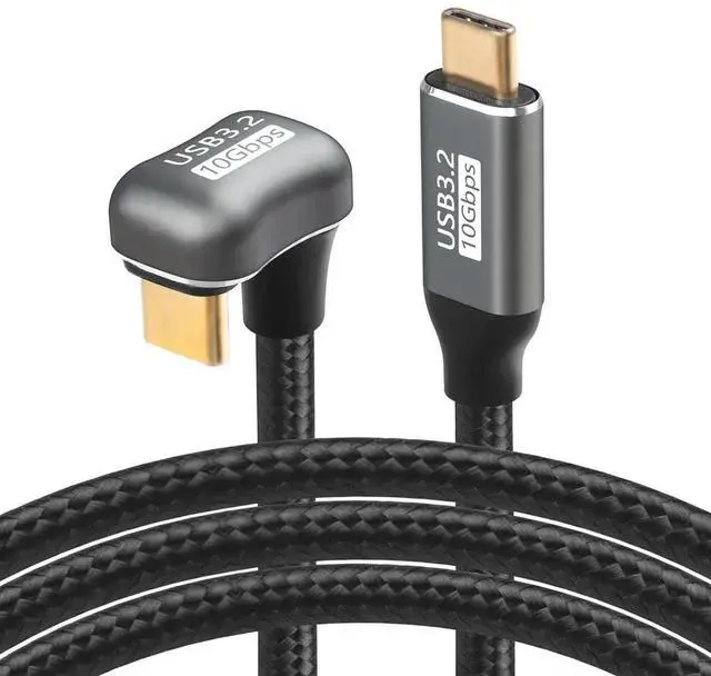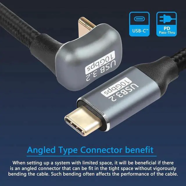 Unique U-shaped design: inverted U-shaped back corner USB-C USB 3.2 type C male to male 10Gbps extension cable 100W with sleeve designs the inverted U-shaped type C connector. The angled angle allows you to connect it to a female port even if space around the port is limited.