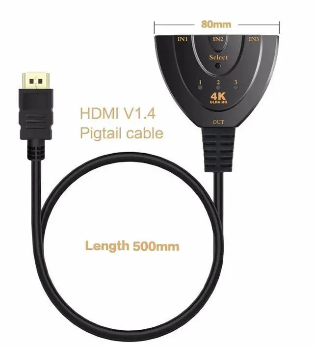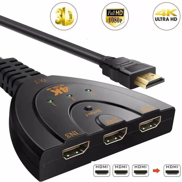 HDMI Splitter Adapter Cable, 1080P HDMI Splitter 3 in 1 Out, HDMI Male to 2 HDMI Female 1 to 2 Way Splitter Cable for HDTV, LCD Monitor and Projectors