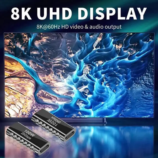 The USB-C coupler is a type-C adapter with the same type-C plug on both ends. It can transmit high-definition video and audio, providing an excellent experience for your gaming or office tasks. The actual data transfer speed will depend on your cable or device.