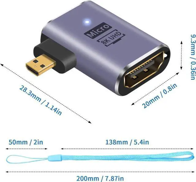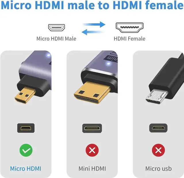 Micro HDMI to HDMI Adapter, 8K HDMI to Micro HDMI Extender, 8K Micro HDMI Extension Adapter