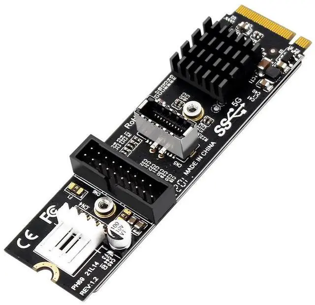 This adapter converts an M.2 M-Key NVME slot into a Type-E USB 3.1 front panel socket and a USB 2.0 header, allowing you to easily add front USB-C and USB 2.0 ports to your computer case. It supports 5Gbps high-speed transmission, ensuring fast and stable data transfer for U disks, mobile SSDs, card readers and other peripherals.