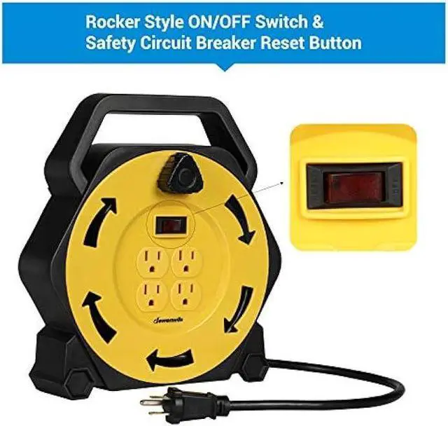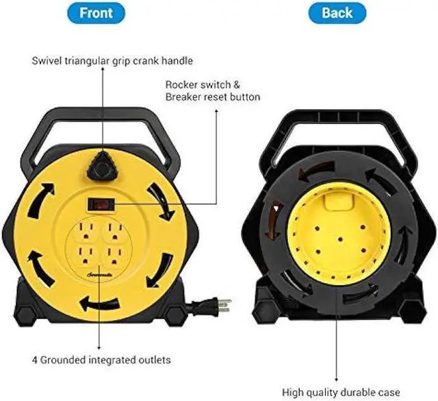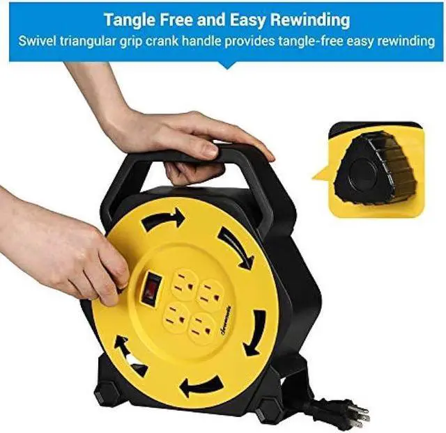 • Easily Wind and Unwind Extension cord winder features a swivel triangular grip crank handle for tangle free, easy winding; helps to wind the power cord easily into electric cord reel and keep the cords neat and tidy for next use