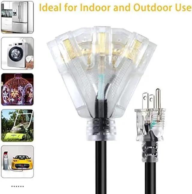 [Indoor & Outdoor Use] - Our multi tap Design lets you use up to 3 appliances/tools at the same time, just makes it easy and convenient, letting you add another tool or any other power device right there without pulling out an extra cord! This power extension cord is designed to extend the connection to your wall outlet or any power devices. Convenient to have for your Home, Office, Garage.