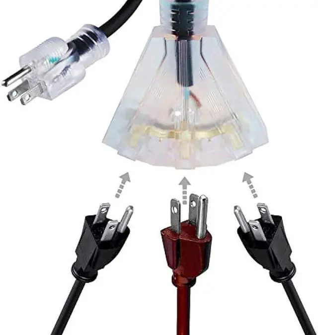 Extension Cord]: Premium STW our extension cords feature not one but three outlets, each set at a different angle from one another. Plug all of your outdoor decorations, accessories, and tools into this one convenient spot!