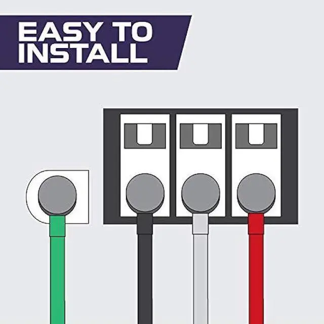 EASY INSTALLATION & SPACE SAVING DESIGN - The right angle plug ensures that the cord connects securely to the outlet and stays flat against the wall- ideal for tight spaces. It also features molded ring terminals for easy installation and superior connection, as well a side grip plug for quick and smooth unplugging.