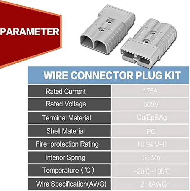Wide ApplicationOur Anderson plug kit provides an easy way to handle direct power connections to car batteries; truck, ATV and RV winches, lifts and cranes; and tug and outboard motors on boats and boats, as well as household and industrial applications such as lathes, chargers and power inverters.