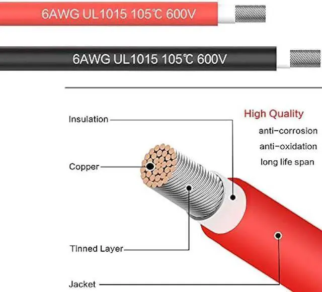 UL1015 Wire Each wire is 1.2 meters long, 6AWG, Rated