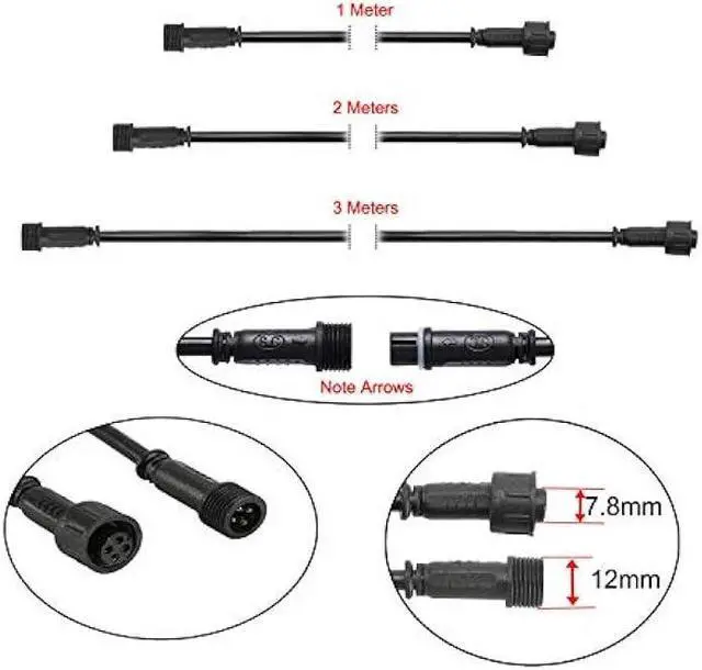 Extend the distance from light to light(RGB Multi-color lights) directly. Special Connector port, waterproof rating IP67; Male and female wire port, easy to connect; Made of high quality UL2464 wire; High quality, long lifespan.