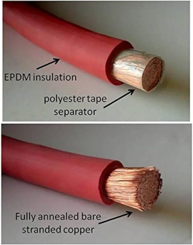 WindyNation Power-Flex Cable is fully annealed PURE copper, flexible (high copper strand count), with a tough, solvent resistant EPDM insulation jacket. REFER TO THE PHOTO GALLERY FOR A DETAILED SPECIFICATION CHART