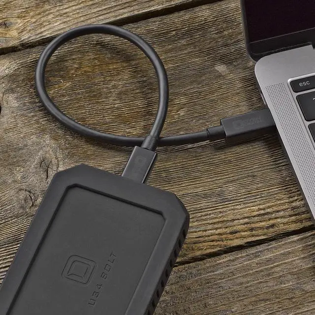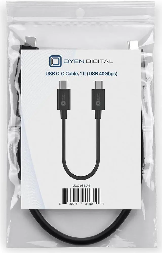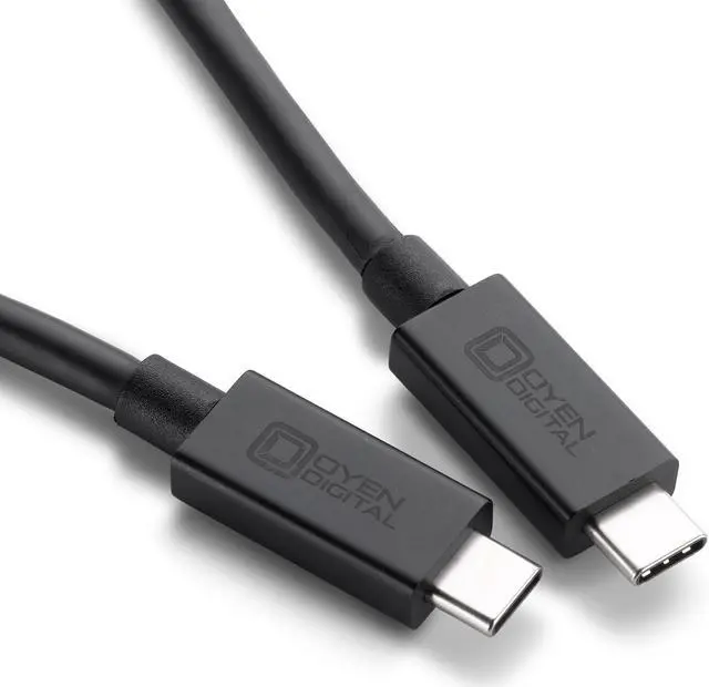 The Oyen Digital USB4 40Gbps USB-C Coaxial Cable features a data transmission rate of 40 Gbps and power delivery charging capacity of 240W. When connected to a device that enables video output, such as Thunderbolt 4 docking station, the cable can support up to one 8K monitor and two 4K dual displays. The coaxial structure provides a superior 16 core 8 strand coaxial line with triple layer shielding. This allows the Oyen Digital cable the best possible protection against electromagnetic interference while delivering maximum performance.