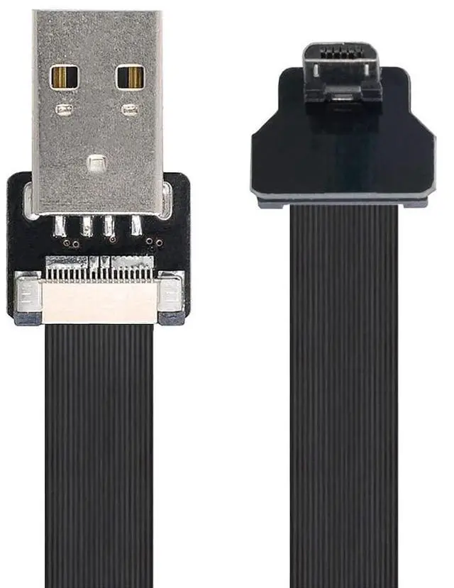 Micro USB Flat Cable USB 2.0 Male to Micro USB Male 90 Degree UP Angled Ribbon Flex Extension Cable Adapter 0.2