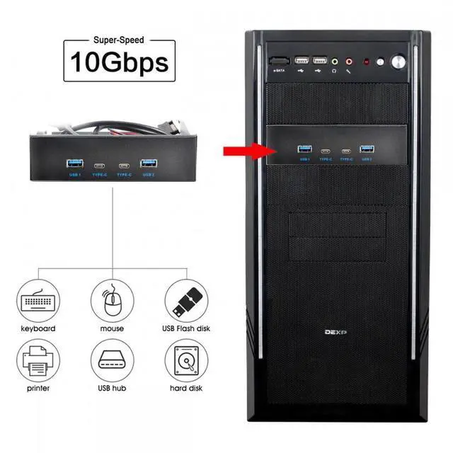 Wide Compatibility: Fully compatible with Windows 11/10/8.1/8/7/Vista/XP. Transform your 5.25" CD drive space into a versatile hub featuring 4 USB 3.1 Gen 2 USB-A ports.Enhance the scalability of your desktop computer to meet a variety of needs.