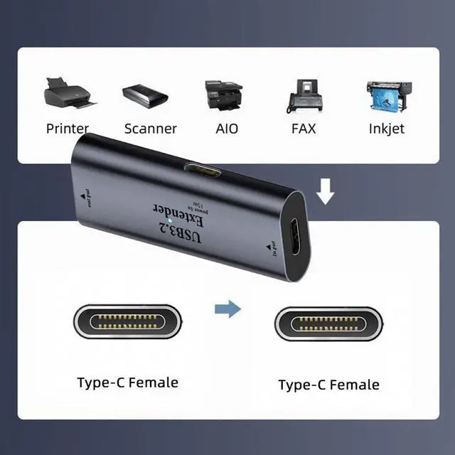 USB 3.0 Repeater Adapter Type-C Female to Type-C Female Extender with Chipset for Camera Printer Computer