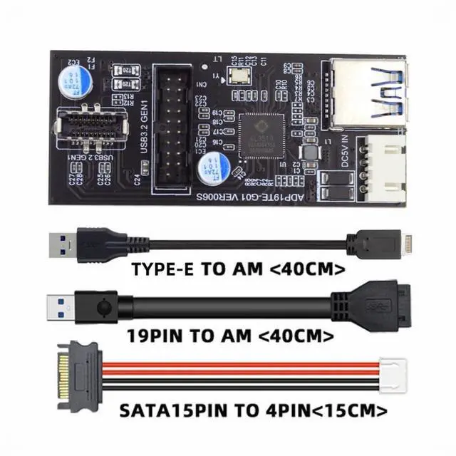 Type-E or USB 3.0 19/20Pin Motherboard Host to Dual USB 3.0 19/20Pin & Type-E Header, With extral SATA power cable.