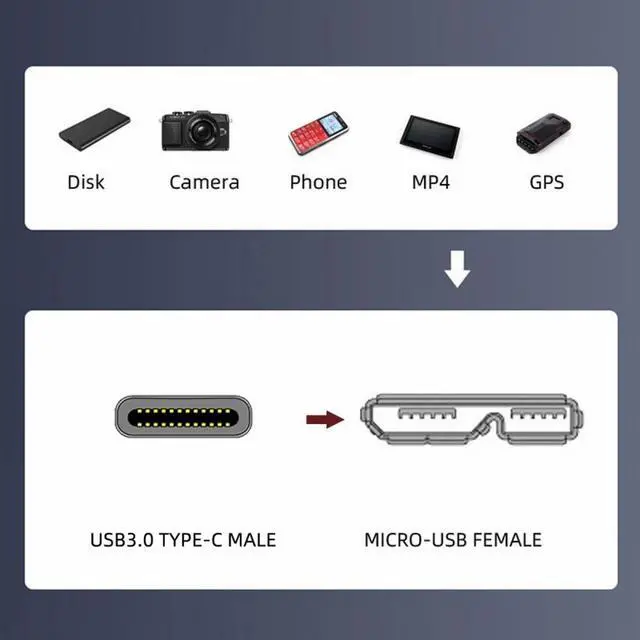 Adapts USB 3.0 Type-C Male Connections to USB Micro 3.0 Male and vice-versa, With this cable, you can directly connect micro usb 3.0 socket, converted to usb 3.0 extension.