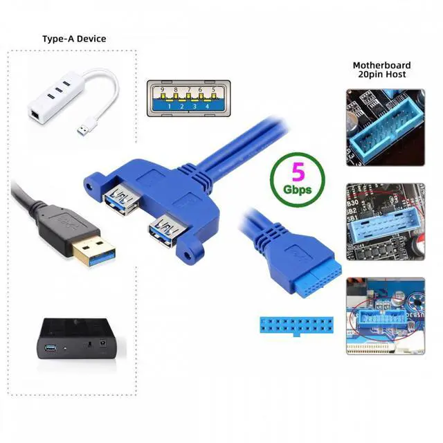 With this cable, you can directly connector motherboard 20pin socket, converted to dual usb3.0 socket.