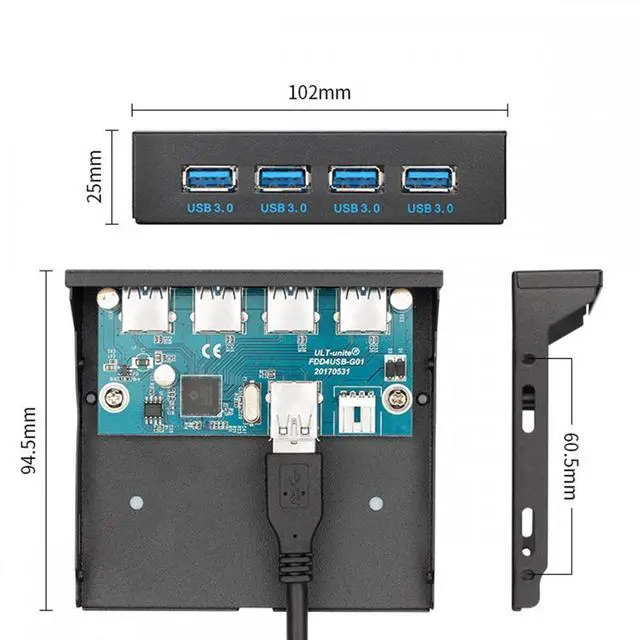USB 3.0 HUB 4 Ports Front Panel to Motherboard 20Pin Connector Cable for 3.5" Floppy Bay