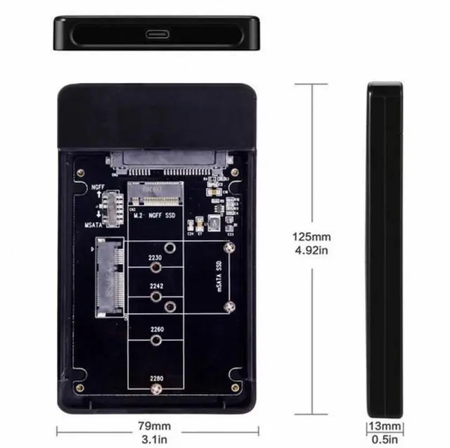 Combo M.2 NGFF B-key mSATA SSD to USB Type-C Converter Case Enclosure with Switch