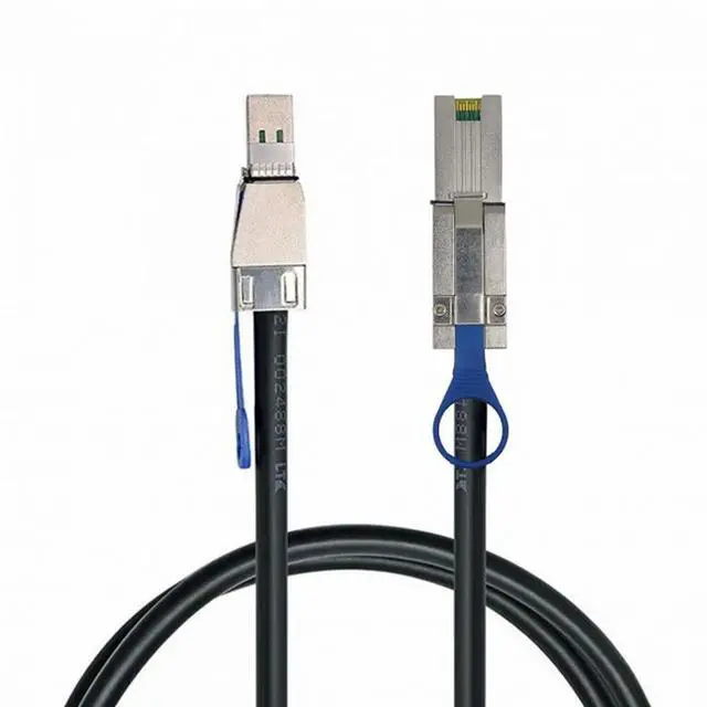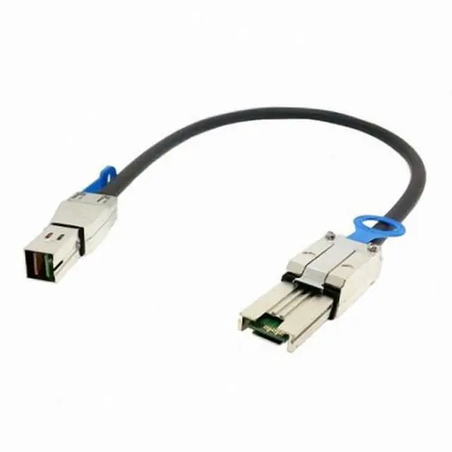 It is an external Mini Serial Attached SCSI HD x4 (SFF-8644) to Mini Serial Attached SCSI x4 (SFF-8088) cable