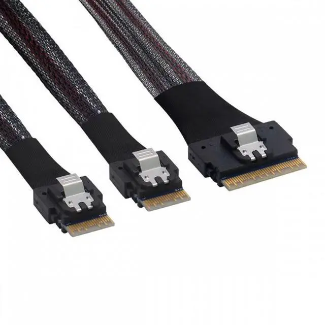This cable can be used to connect internal devices, e.g. a backplane with Slimline 8654 74pin connector to a controller with SFF-8654 4I 38pin connector. also work for 74pin host to dual 38pin target.