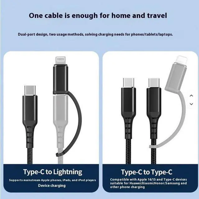 Ideal for charging, travel, office, or home use, this two-in-one cable offers a convenient, clutter-free solution for charging multiple devices. Whether youre powering up your iPhone 16 in the car or syncing your tablet with a computer, this cable provides a dependable and versatile charging accessory.